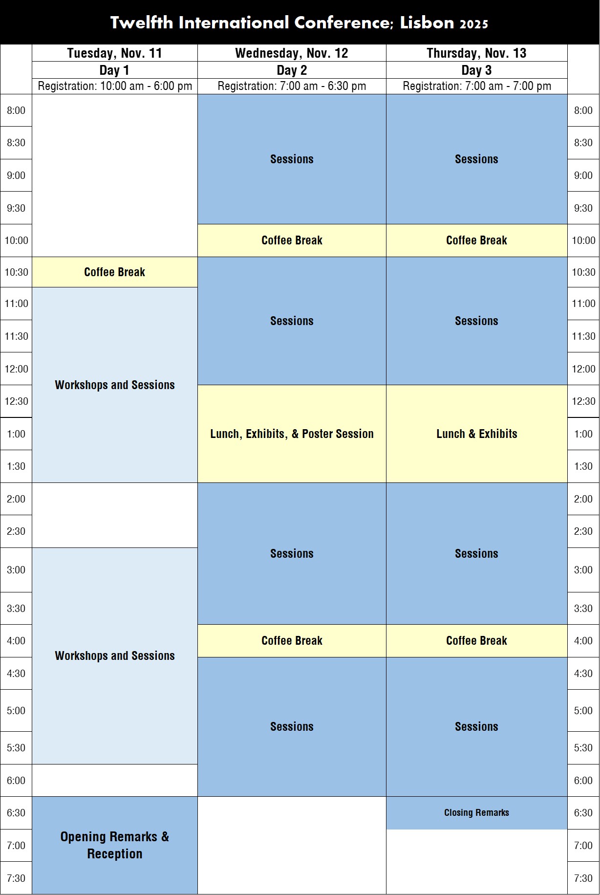 NOTE: All times listed below and throughout the program book are in Western European Time (WET).